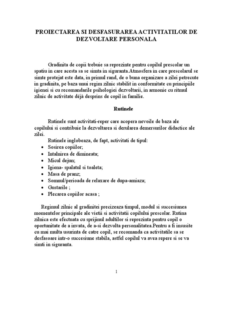 Tema 1 Activităţi De Dezvoltare Personală In Grădiniţă