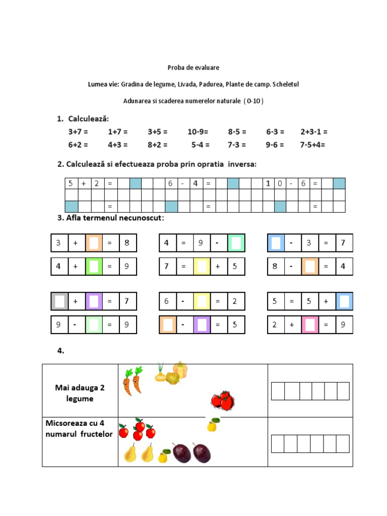 Exerciții De Adunare și Scădere 0 10 Materiale Didactice Matem