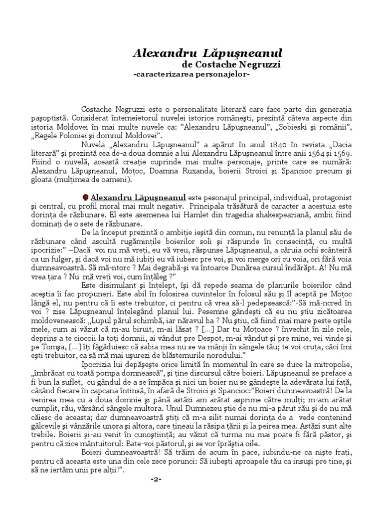 Costache Negruzzi Alexandru Lapusneanul Caracterizarea Person