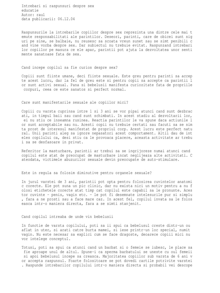 Intrebari Si Raspunsuri Despre Sex Pentru Copii