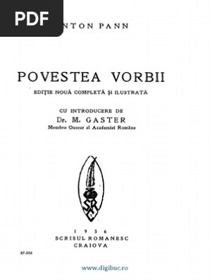 Povestea Vorbii Anton Pann Pdf Carte Pdf Citești Instant