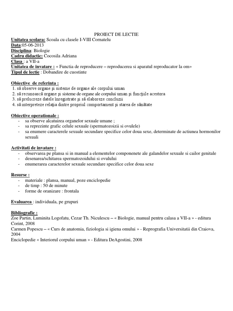 Doc Proiect Didactic La Biologie Vadim Beschieru Academia Edu