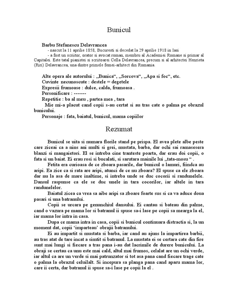 Bunicul De Barbu Stefanescu Delavrancea Pdf