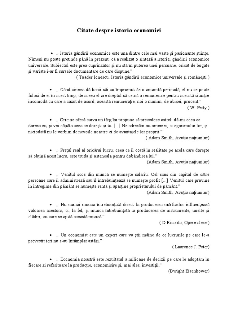 Citate Despre Istoria Economiei