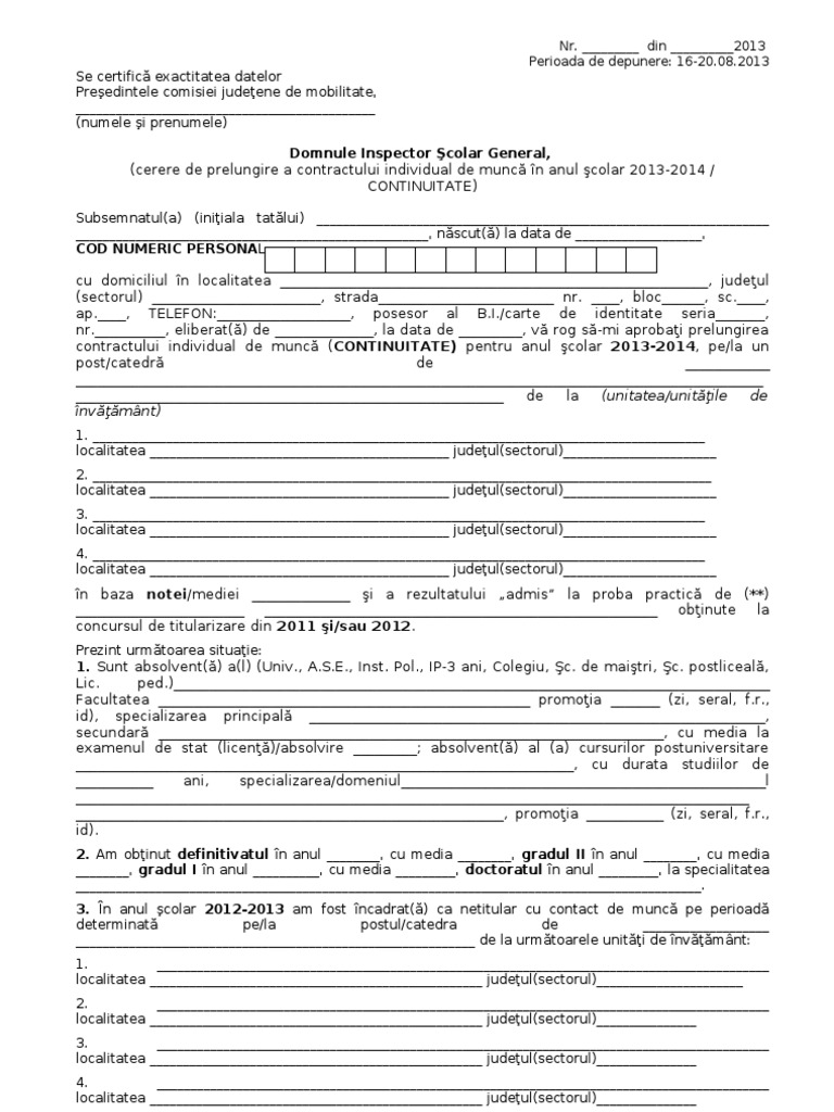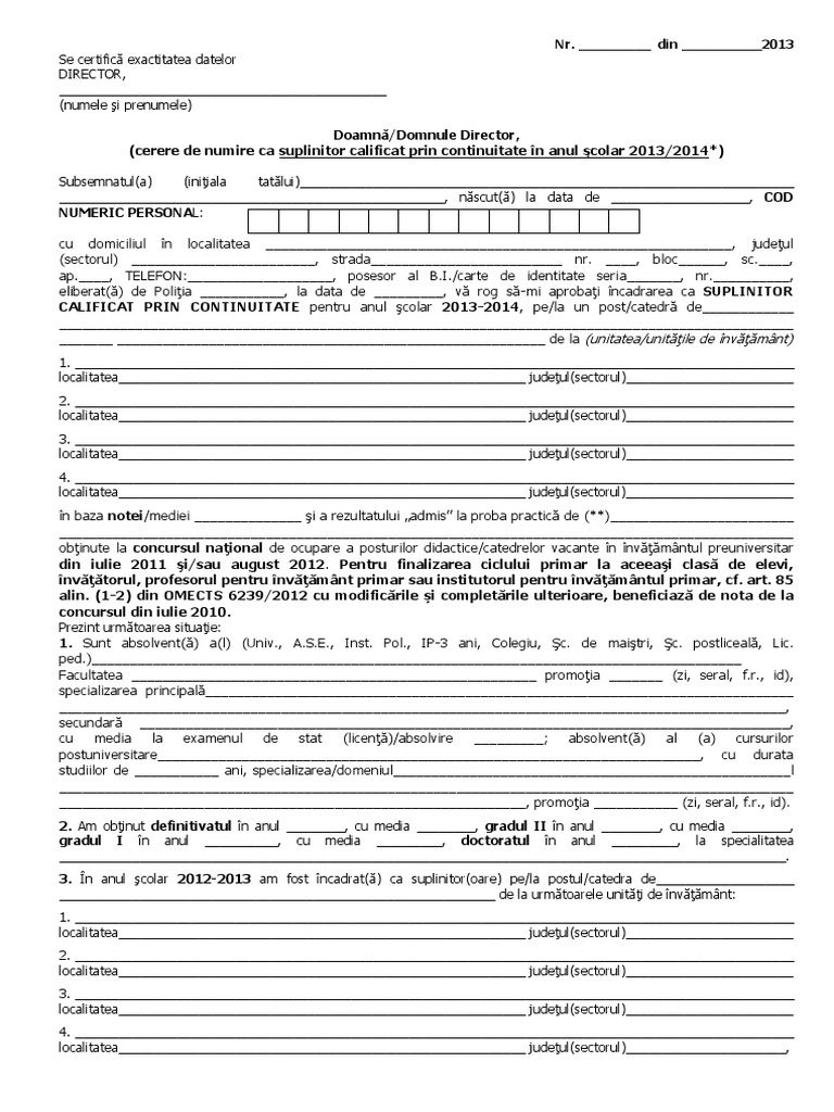 Cerere De Numire Ca Suplinitor Calificat Prin Continuitate Cu