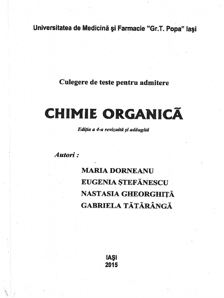 Teste Si Probleme De Chimie Organica Pentru Admiterea In Facultati De Medicina Farmacie Stomatologie Si Pentru Pregatirea Olimpiadelor Scolare Laura Stanisteanu