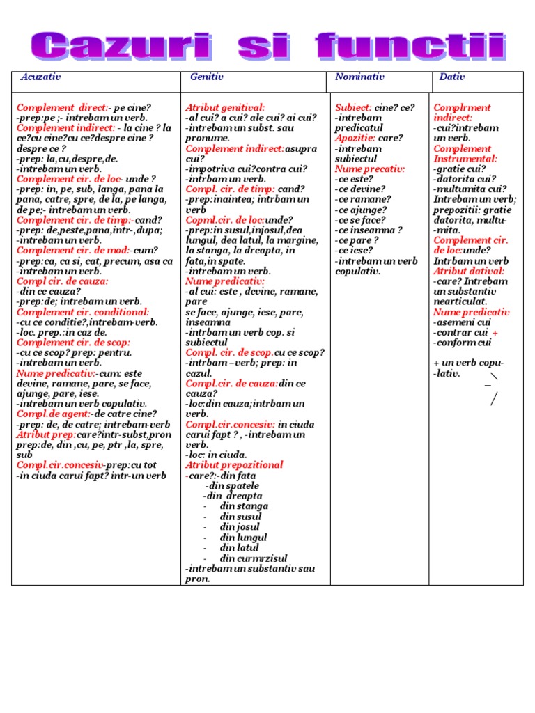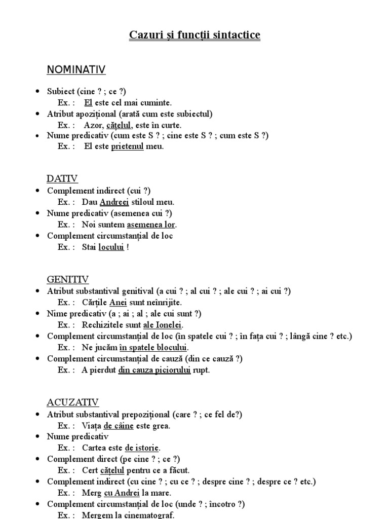 Vreau Sa Aflu Funcțiile Sintactice La Nominativ Acuzativ Dativ Genitiv Urgent Le Vreau Acum Brainly Ro
