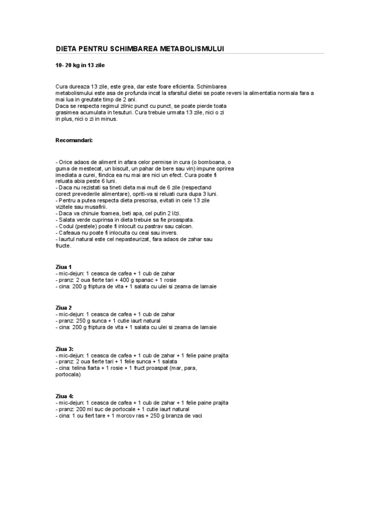 Dieta Pentru Schimbarea Metabolismului 10 20 Kg In 13 Zile