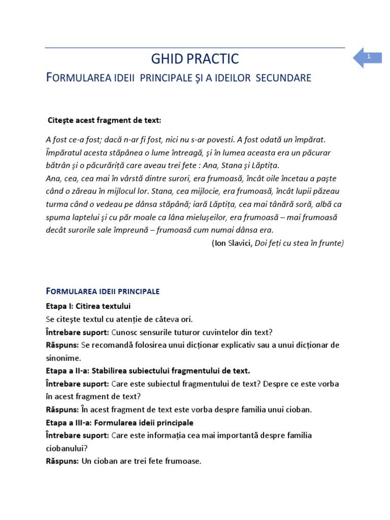 Ghid De Formulare A Ideilor Principale Si Secundare