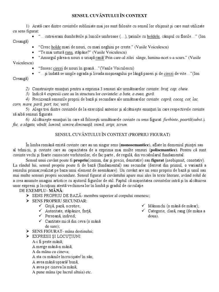 0 Sensul Cuvantului In Context