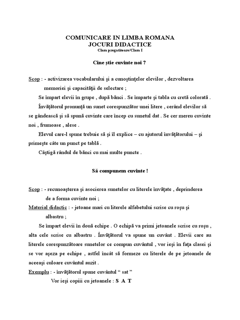Exemple De Jocuri Didactice Utilizate La Lb Romana