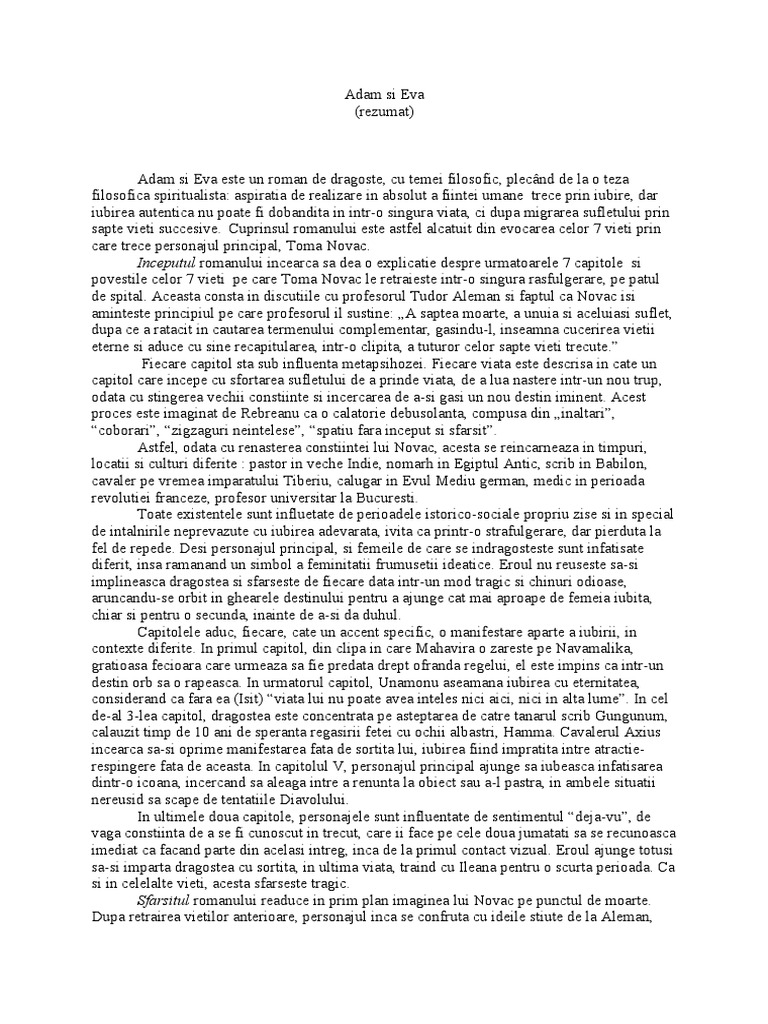 Adam Si Eva Liviu Rebreanu Rezumat Doc Document