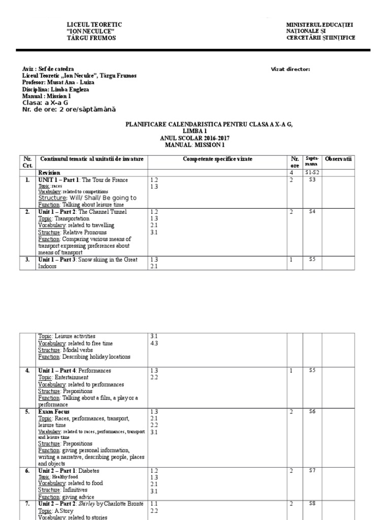 Planificare 10 G 2016 V1 English Language Onomastics