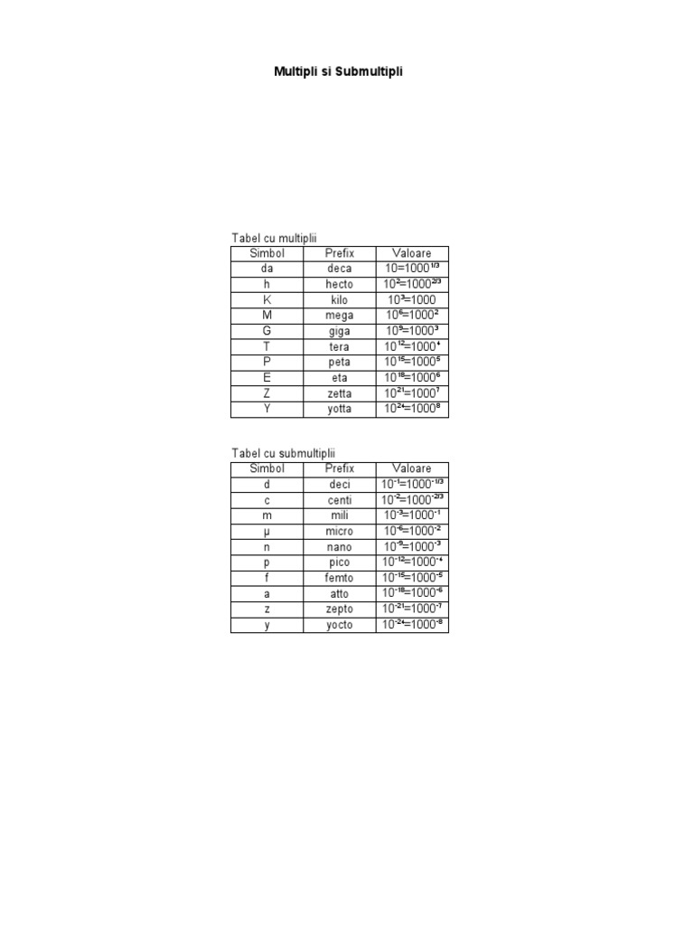 Multiplii Si Submultiplii Unitatilor De Masura