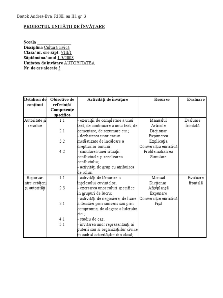 Modele Proiecte Pe Unitati De Invatare