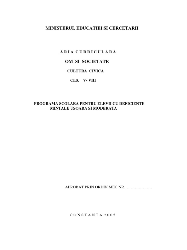 Programa Cultura Civica Invatamant Special Deficiente Usoare Moderate