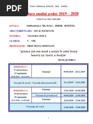 Planificare Cultura Civica 2019 2020