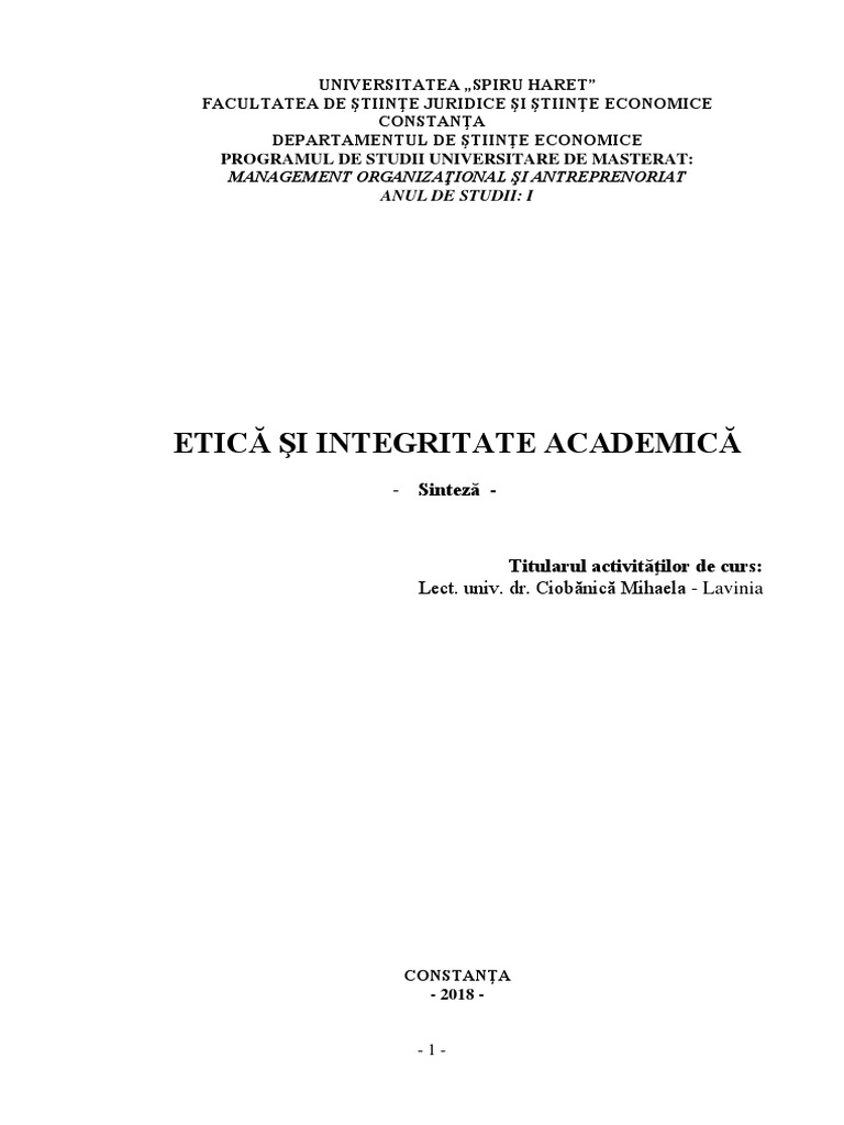 Suport De Curs Etica Si Integritate Academica 2 Docx