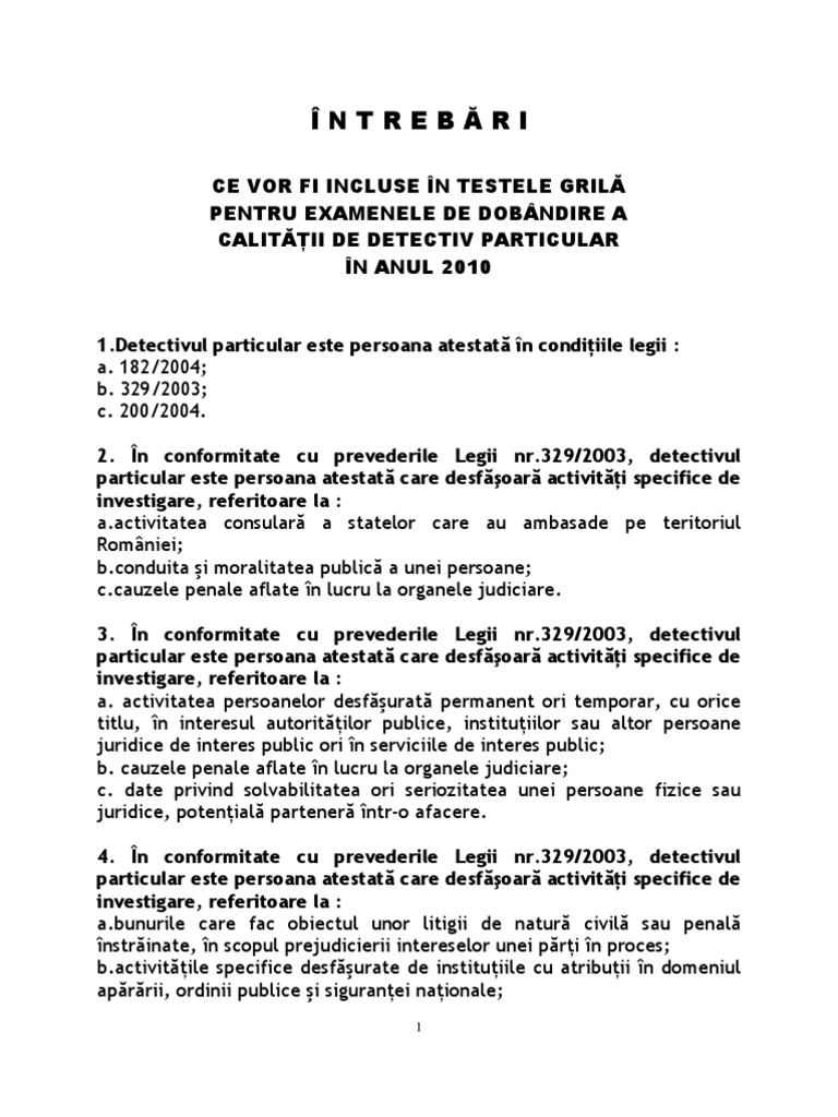 Teste De Specialitate Sursa Externa Politie Ovidiu Olx Ro