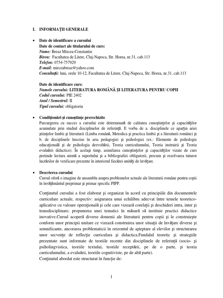 Doc Literatura Romana Pentru Copiii Bianca Bianca Academia Edu