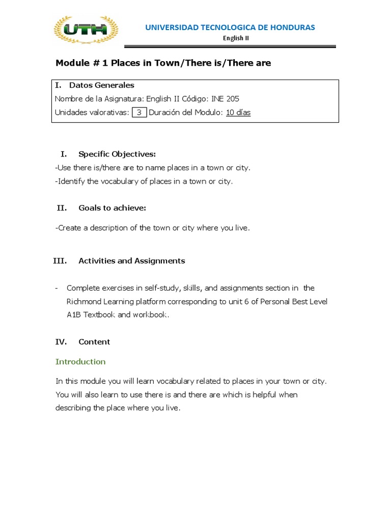 Module 1 Places Town There There Are Pdf Grammatical Number Grocery Store